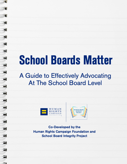 Download these resources from our friends at the Human Rights Campaign and the School Board Integrity Project.